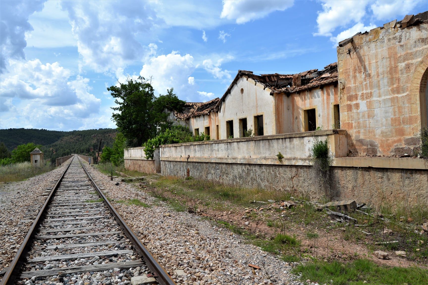 Foto: Línea ferroviaria Utiel-Cuenca-Aranjuez, a su paso por la estación de Enguídanos (Cuenca) Autor: José Saíz Valero